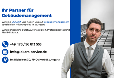 Lakara | Gebäudemanagement ist der ideale Partner für Ihre Bedürfnisse im Gebäudemanagement. Mit einem starken Fokus auf Professionalität, Zuverlässigkeit und Flexibilität gewährleistet unser Team, dass alle Aspekte des Gebäudemanagements reibungslos ablaufen.